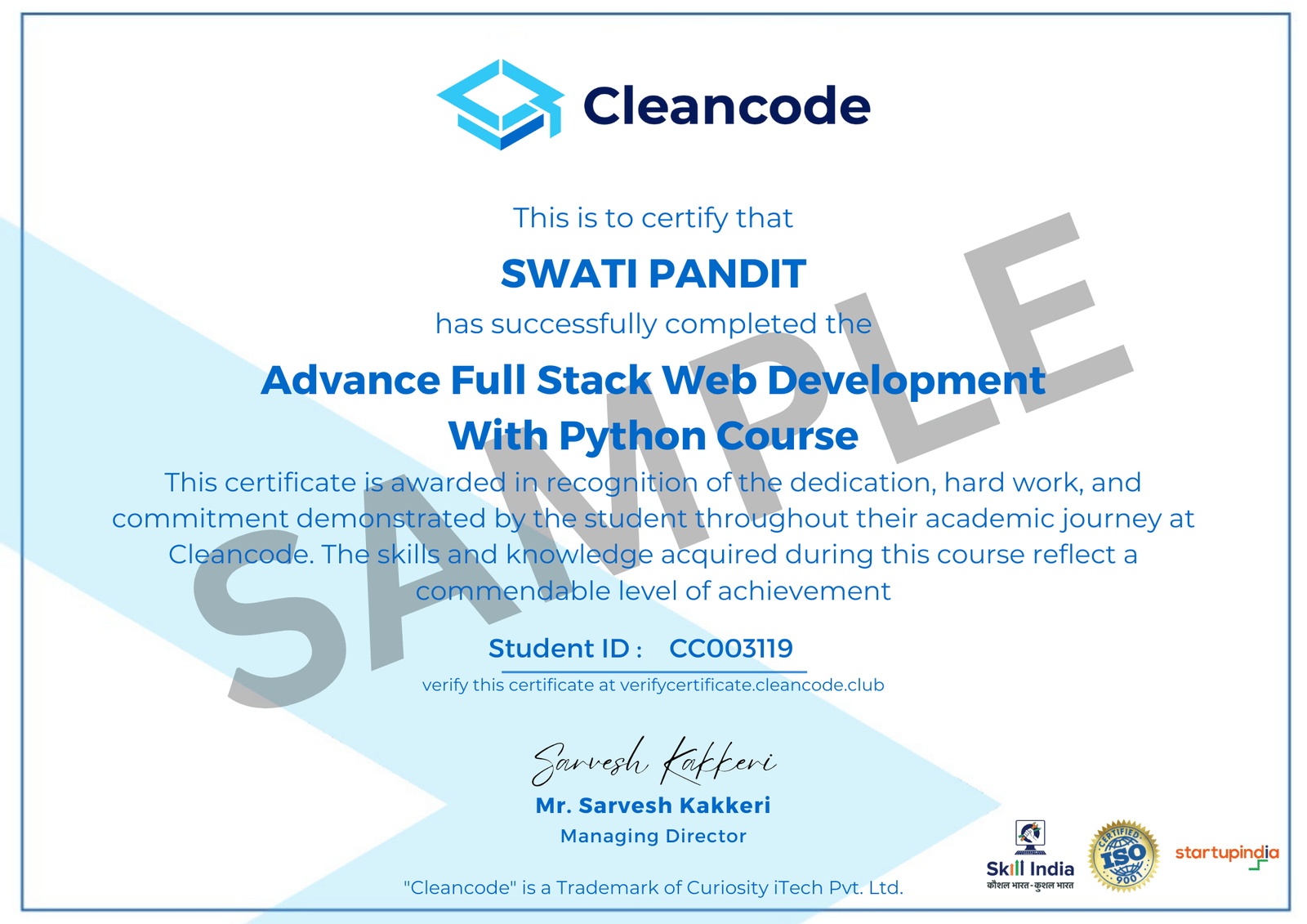 Learn Full stack web Development with Python :Flask or Django, RESTful API, MongoDB, React.js, Node.js. Build dynamic web apps. Gain hands-on full-stack skills. Our Curriculum is designed and structured by industry professionals and IIT graduates.