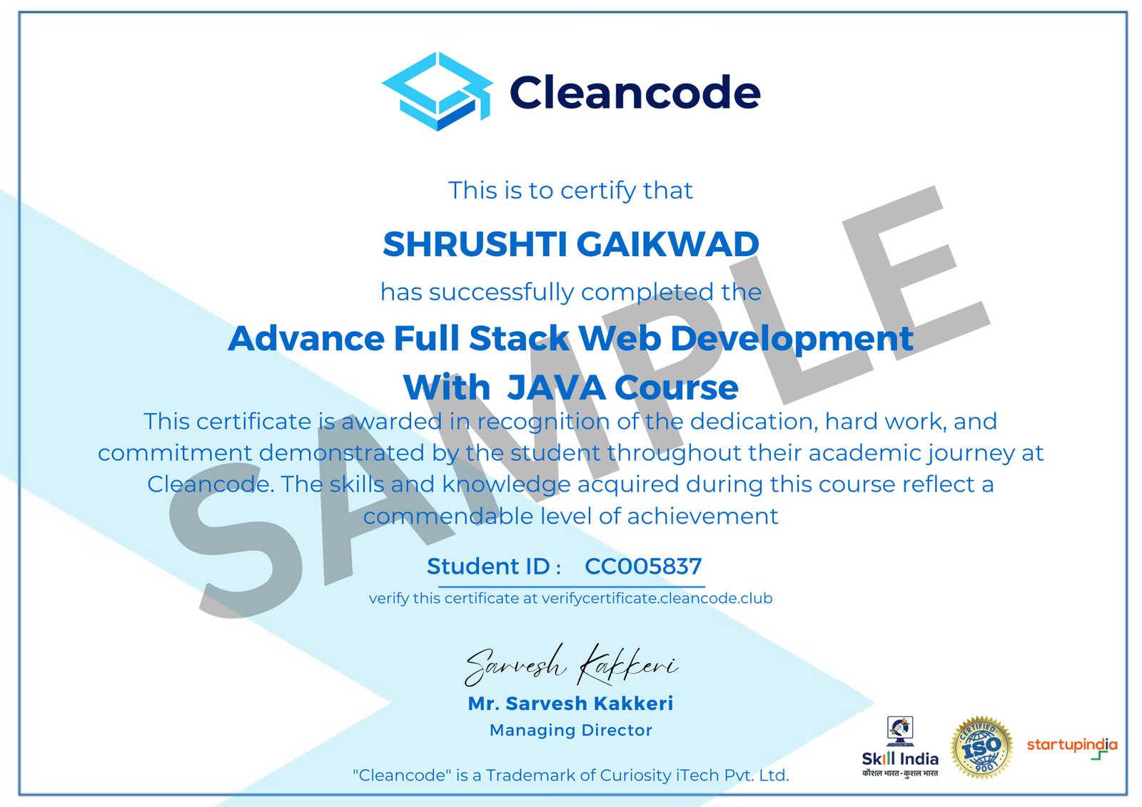 Once you have completed the course, you will be able to generate your certificate and will also be eligible for placement assistance.